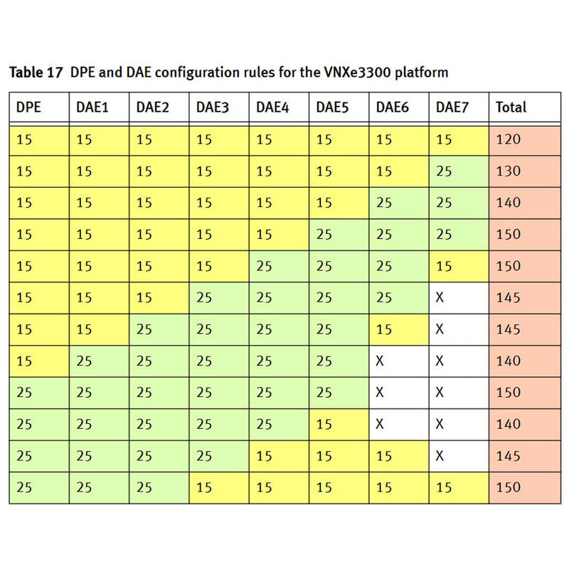 Either a 2U, 15 (3.5-inch) disk drive DAE (DAE6S) or a 2U, 25 (2.5-inch) disk drive DAE (DAE5S) is supported in several configurations. View the image above to see those configurations.
