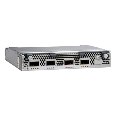 The Cisco UCS 2304 Fabric Extender has four 40 Gigabit Ethernet, FCoE-capable, Quad Small Form-Factor Pluggable (QSFP+) ports that connect the blade chassis to the fabric interconnect. Each Cisco UCS 2304 can provide one 40 Gigabit Ethernet ports connected through the midplane to each half-width slot in the chassis, giving it a total eight 40G interfaces to the compute. Typically configured in pairs for redundancy, two fabric extenders provide up to 320 Gbps of I/O to the chassis.