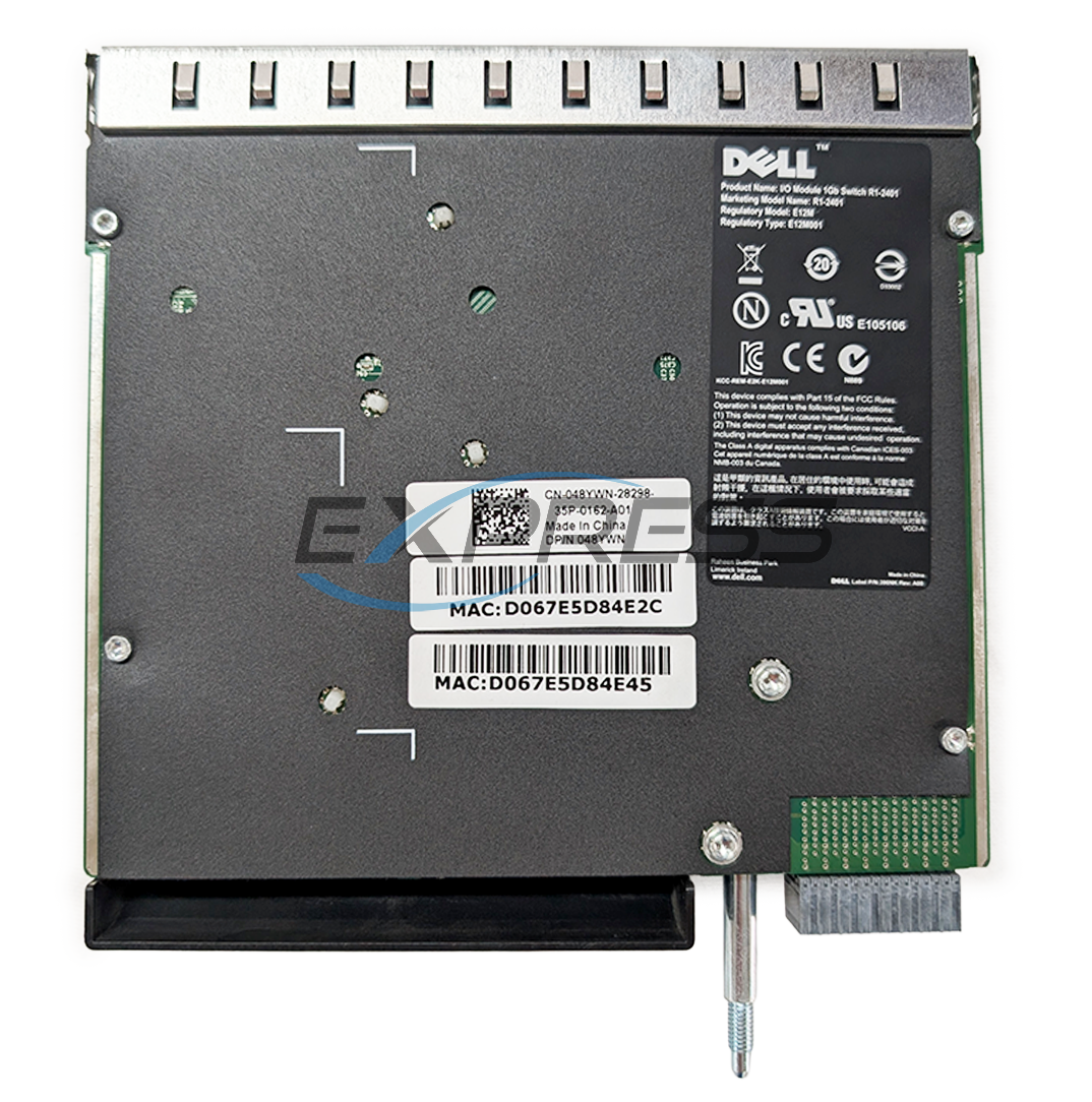 The Dell VRTX R1-2401 switch module provides 8 ports of 1 Gigabit Ethernet connectivity, delivering reliable internal and external networking for the PowerEdge VRTX shared infrastructure platform.