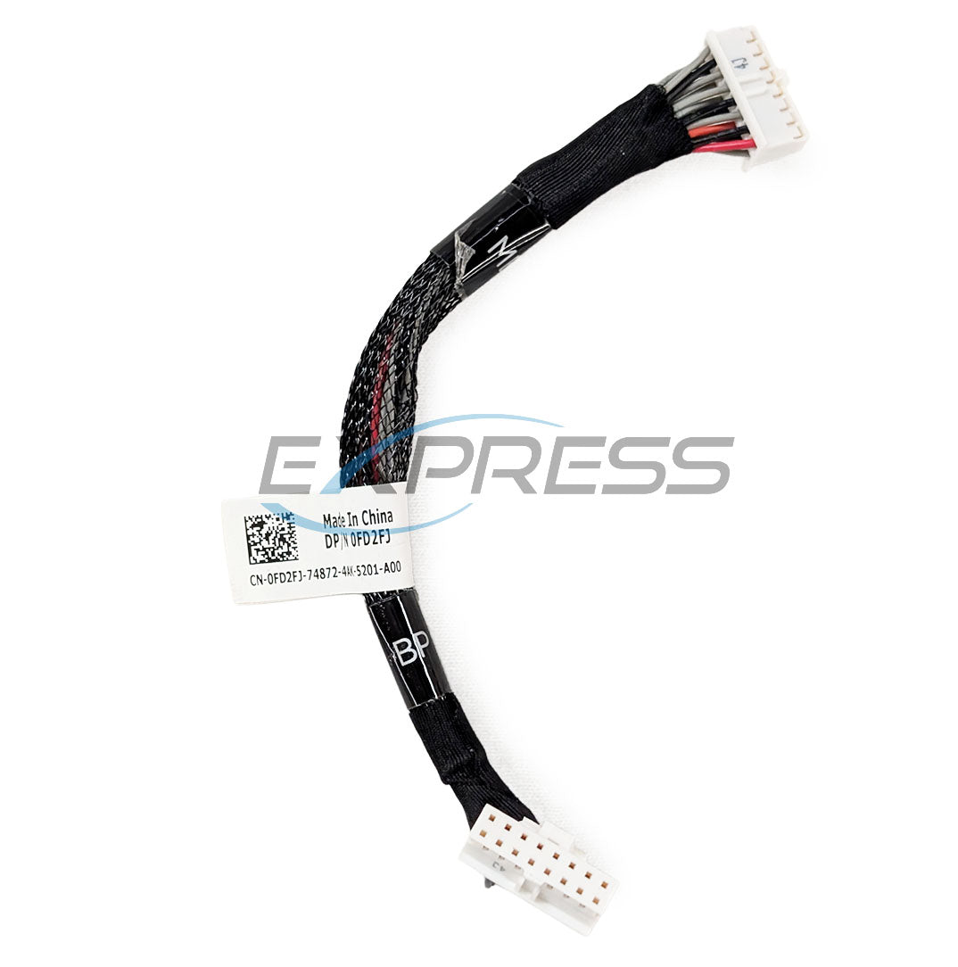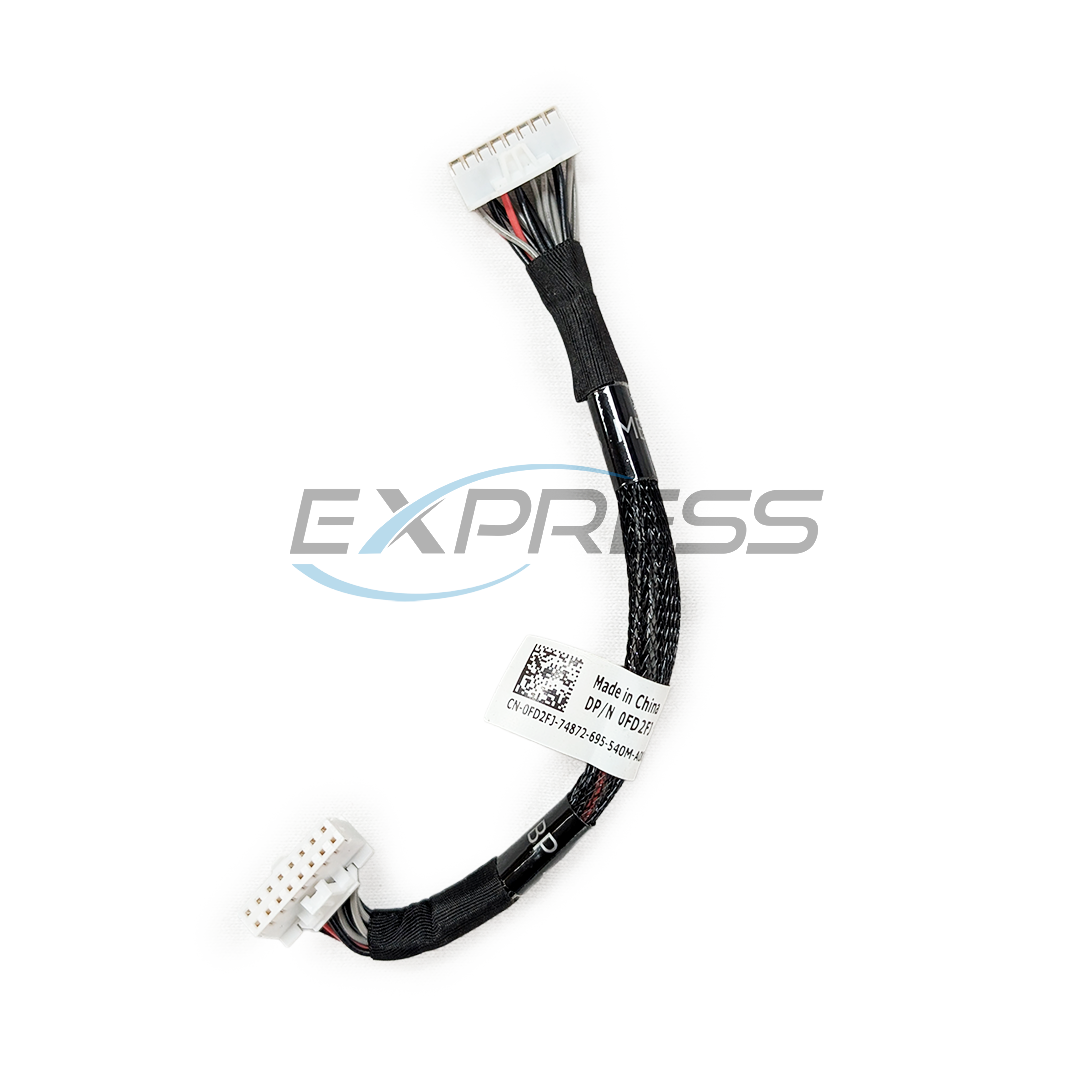The Dell PowerEdge Rear Flex 16-Pin Signal Cable (FD2FJ) is used to establish communication between the rear drive backplane and the system board or RAID controller. It is essential for enabling rear drive functionality in compatible PowerEdge servers.