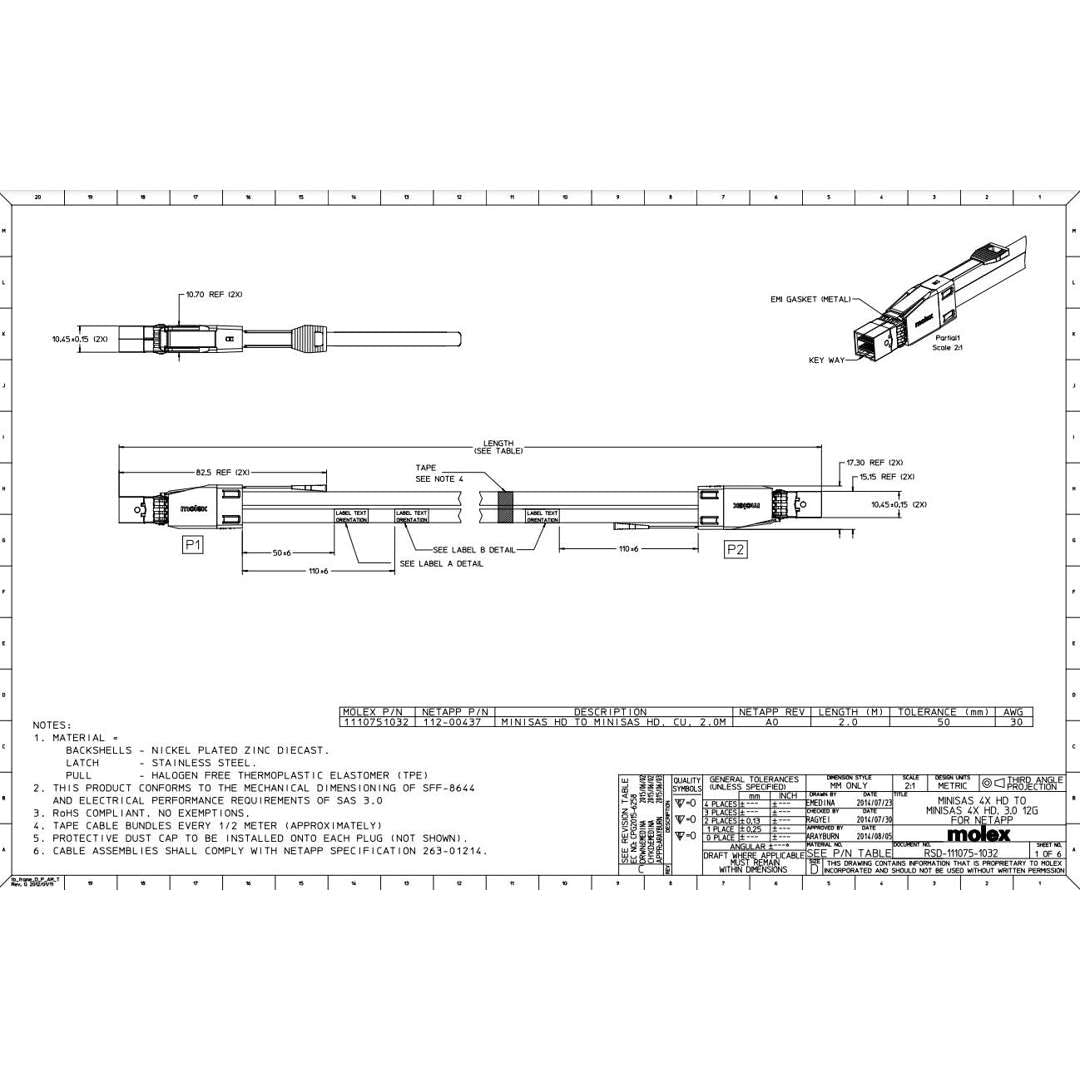 Netapp miniSAS-HD to miniSAS-HD 2M SAS 12Gbps Data Cable (112-00437) | X66032A