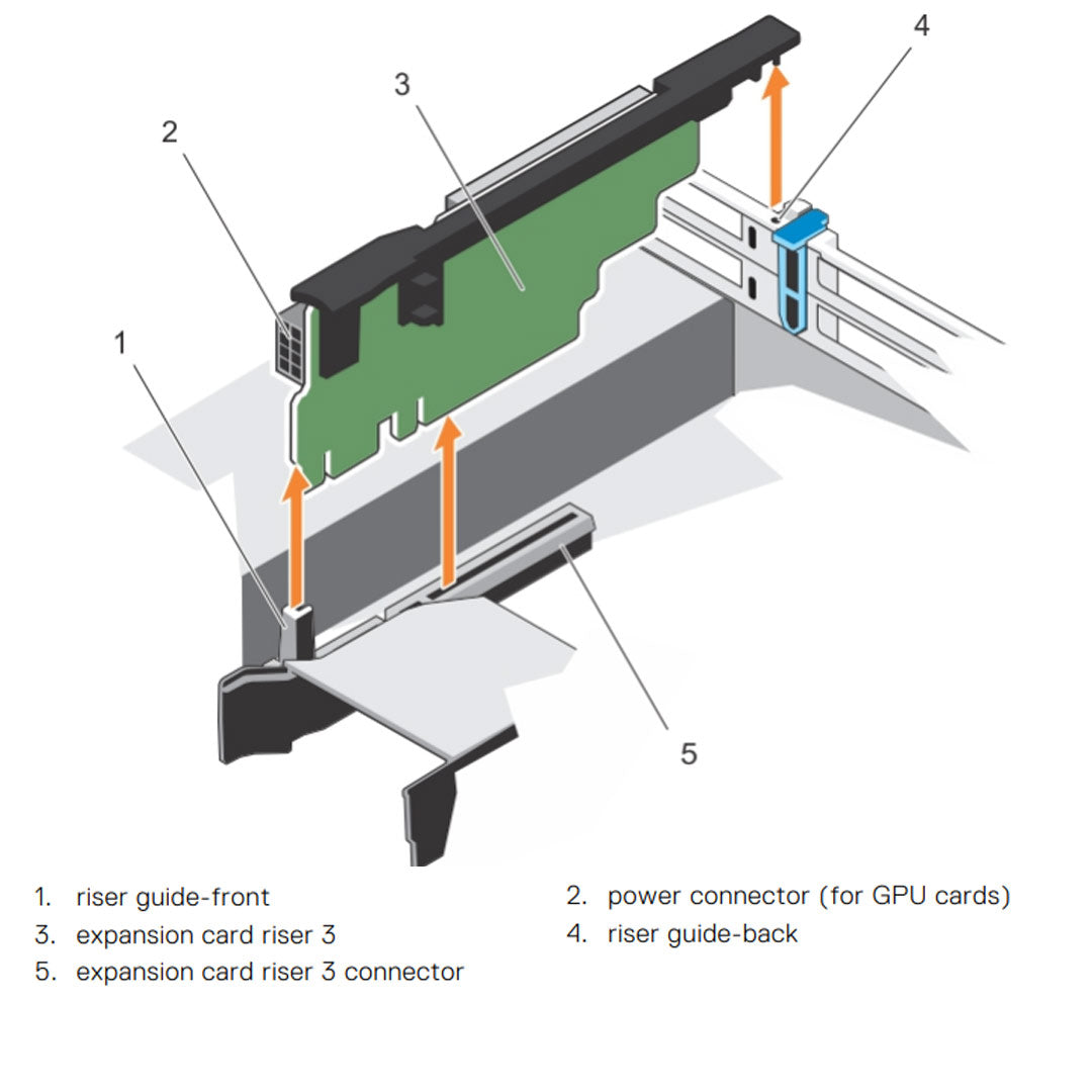 The Dell PowerEdge R730 Riser 3 (DT9H6) provides an additional PCIe slot in the Riser 3 position, allowing for expanded I/O options in the R730 and R730xd server platforms. It supports one PCIe card, ideal for specialized networking or storage needs.