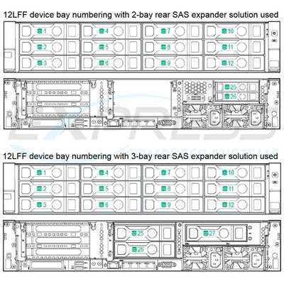 HP SmartDrives 24 + 2 SFF/12 + 3 LFF max, HDD/SS