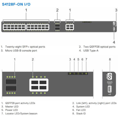The S4128F-ON features 28 ports of 10/25GbE and 2 ports of 100GbE, making it well-suited for high-bandwidth applications such as video streaming, big data analytics, and cloud computing. It supports a variety of network protocols and features, including Layer 2 and Layer 3 forwarding, VXLAN overlay networks, and virtualization-aware networking.