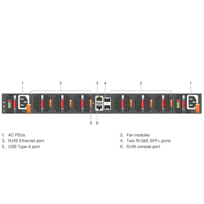 The S5448F-ON top-of-rack (TOR) switch is a one rack-unit access and aggregation switch/router product for 10/25/50/100/200/400GbE Data Center networks. The S5448F-ON supports 48 SFP56-DD 100 GbE ports, eight QSFP56-DD 400 GbE ports, and two 10 GbE SFP+ ports. You can also use this switch as a 25/50/100GbE switch using 25/50/100 GbE breakout for connections to switches, servers, and storage. This switch has two hot-swappable AC or DC power supply units (PSUs) and six hot-swappable fans.