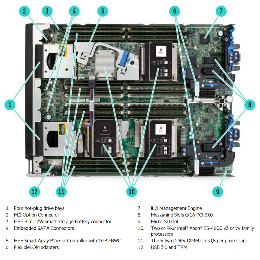• HPE ProLiant BL660c Gen9 server blades are compatible with select 3rd party SANs